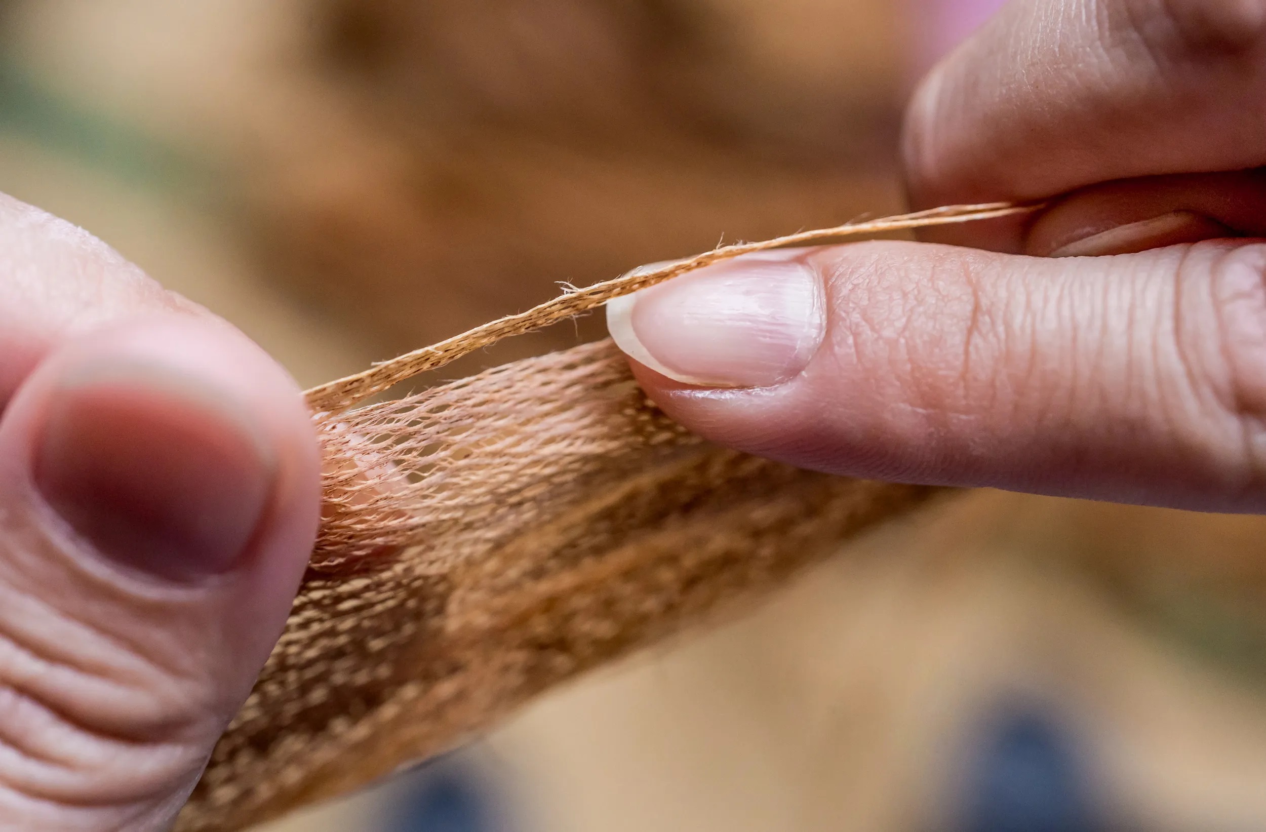 木の糸を手で織り上げた伝統の布